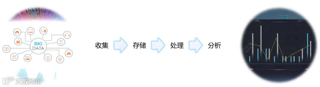 即将“数据”通过收集→存储→处理→分析这个过程,转化为解决方案并直观地呈现给用户。