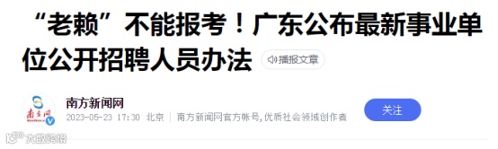 5月23日,广东省人民政府官网发布《广东省事业单位公开招聘人员办法》(以下简称《办法》)明确,失信联合惩戒对象首次被列为不得报名参加广东省事业单位公开招聘人员。《办法》自2023年7月1日起施行。