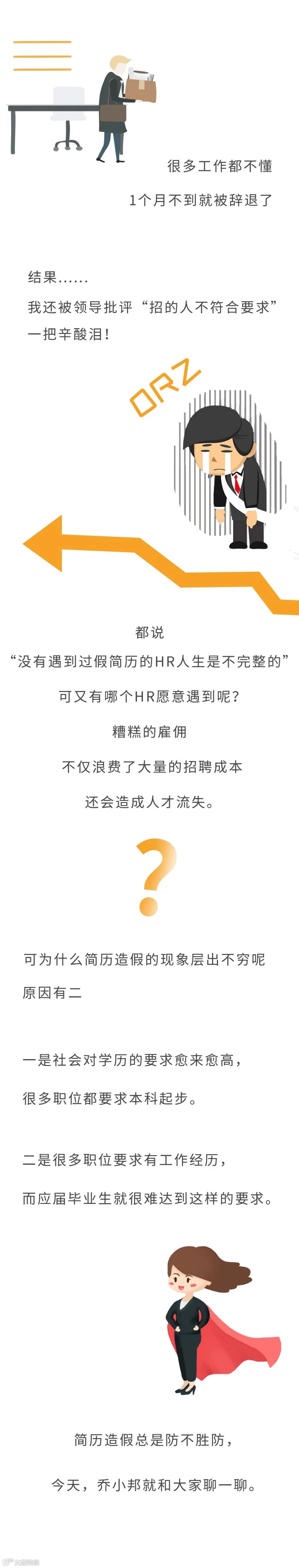 简历造假再而三地出现,小到把自己的实习时间多加1个月,大到伪造证书。对于大部分人来说,简历“造假”,是在自身硬件条件不足下的迂回战术,以此获得心仪公司的面试机会。