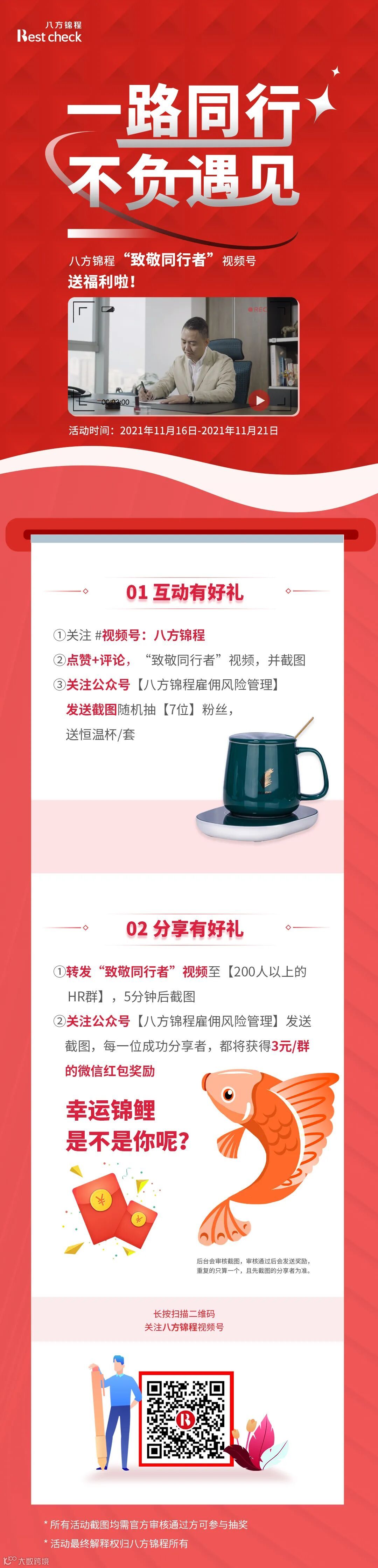 八方锦程“致敬同行者”视频号送福利啦!
