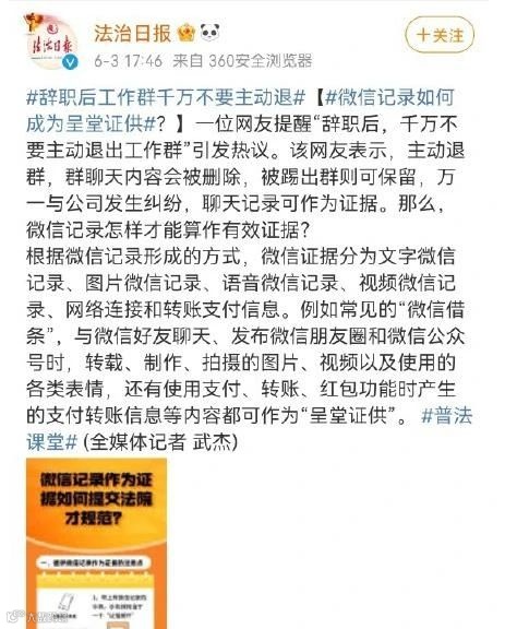 如果一家公司的工作氛围压抑,员工关系紧张,领导结果至上,利益最大,那这家公司大概率会出问题,而且会找员工的问题,那么微信群消息很可能是对自己有利的证据。