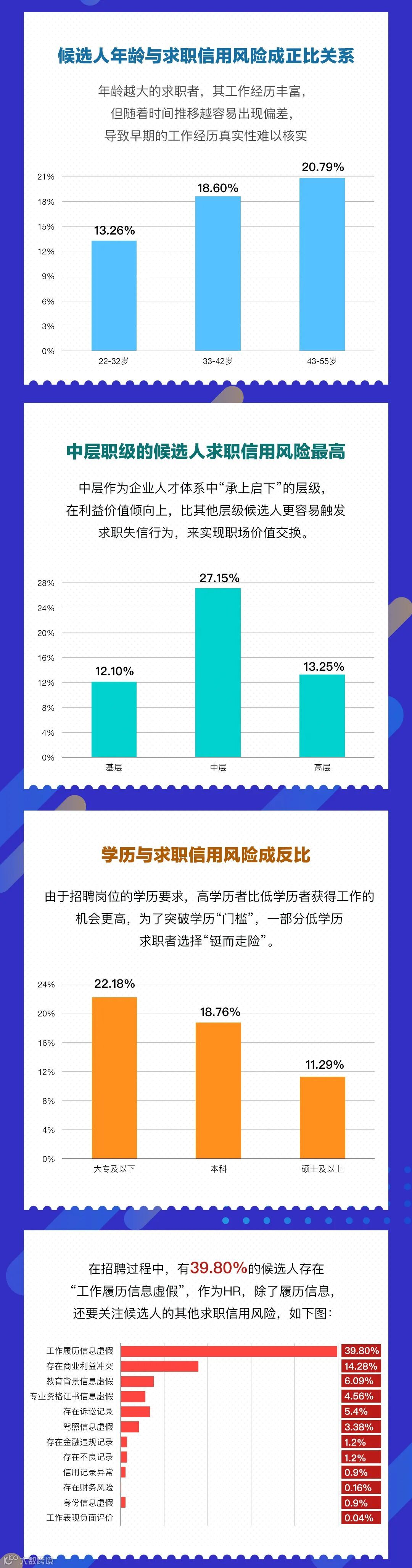 那么接下来,我们就一起来看看《2020年候选人求职信用风险白皮书》,为我们讲述了哪些求职信用风险点: