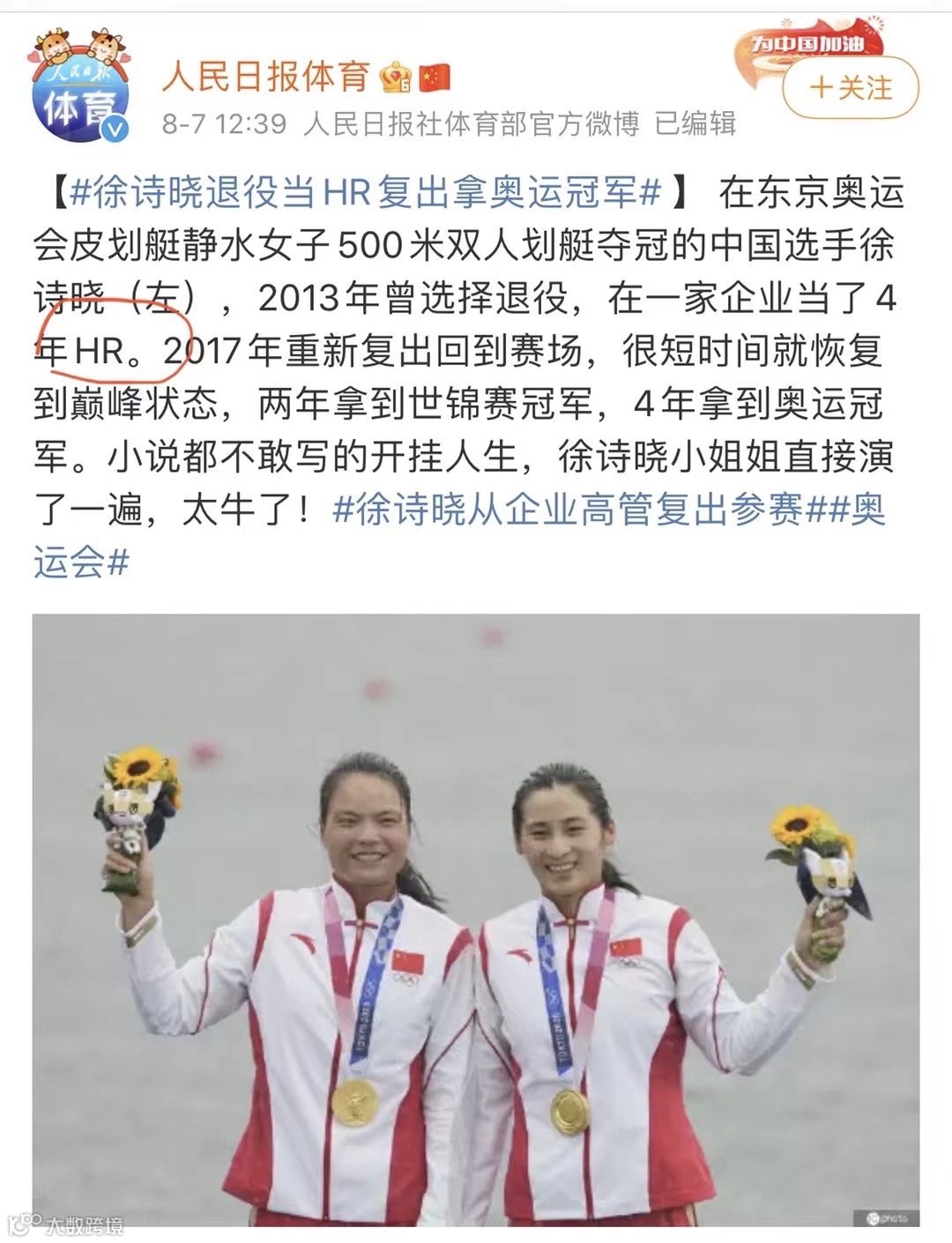 作为 HR,她在职场努力。重回赛场,她也在用汗水和付出,为中国队赢下一枚宝贵的金牌,她的精神与能力,鼓舞着我们所有 HR。