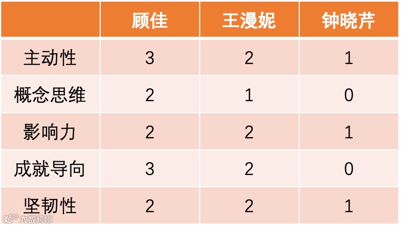 如果这3位来我们公司应聘,肯定会给顾佳一个中高层岗位,王漫妮可以担任主管,而钟晓芹只能做一线的基础工作了。
