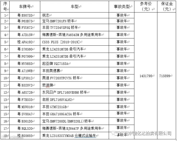 事故车一批(详见下表)。
