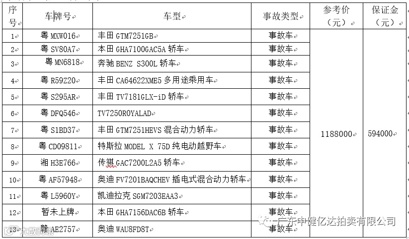 事故车一批(详见下表)。