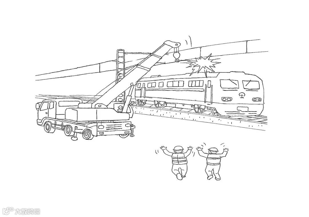 作品内容:未按要求执行“一机一防”,机械设备作业时,刮碰列车车体、破坏钢轨与轨枕,机械失稳倾覆,造成列车脱轨,设备易触碰接触网,引发高压放电、造成设备损坏、人员伤亡。