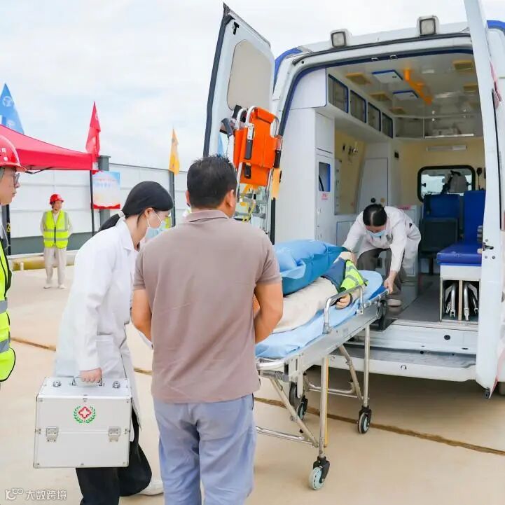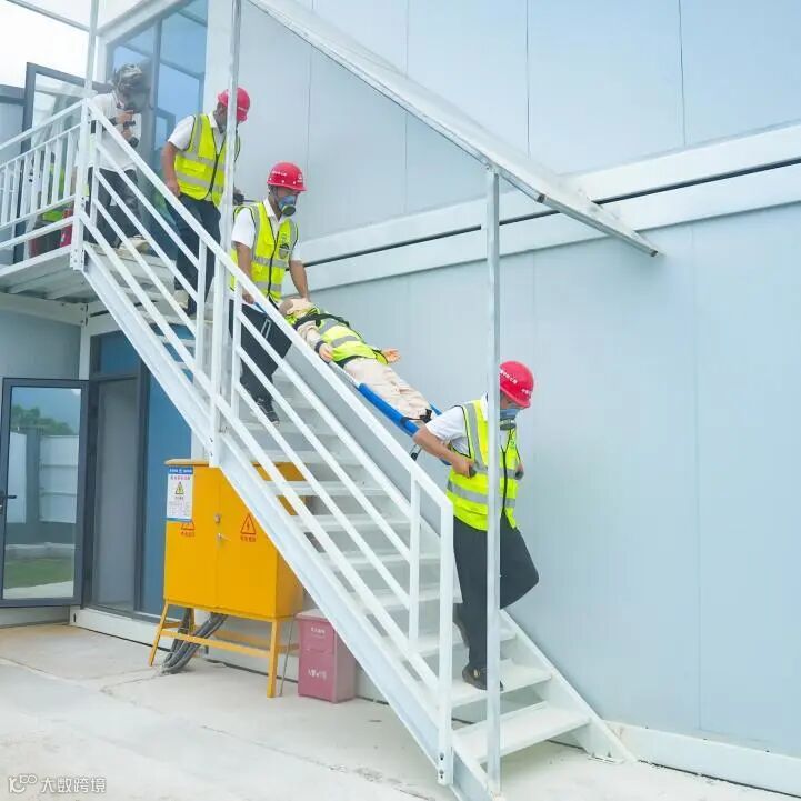 演练启动后,现场安全员立即启动应急响应程序,各应急救援小组闻令而动、协同作战:警戒疏散组快速完成现场警戒隔离,设置警示标识并有序引导人员疏散;技术支持组实时研判火场态势,动态优化救援方案;现场抢救组携带专业装备,采取紧急防护措施;医疗救护组对伤员进行初步救治。在模拟外部救援力量到达环节,119消防车、120急救车按预定方案及时抵达,项目救援人员与专业医护人员实现无缝对接,圆满完成伤员转运处置。整个演练过程指挥有力、响应迅速、处置得当,充分展现了项目部高效的应急响应能力和专业的救援水平。