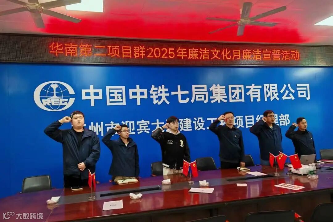为深入践行新时代廉洁理念,纵深推进全面从严治党,4月1日上午,中铁七局广州公司“2025年廉洁文化月启动仪式暨廉洁宣誓活动”在穗举行。公司及所属各项目同步举行廉洁宣誓仪式,全体干部职工以铿锵誓言庄严承诺,共同开启年度廉洁文化建设新征程。