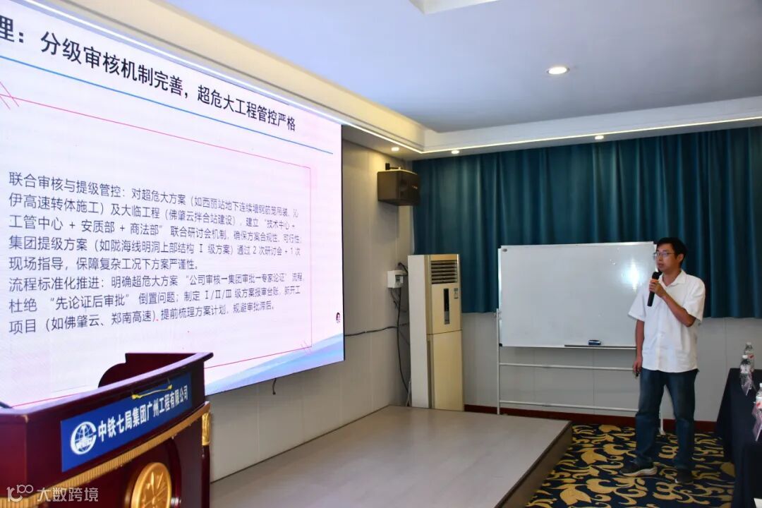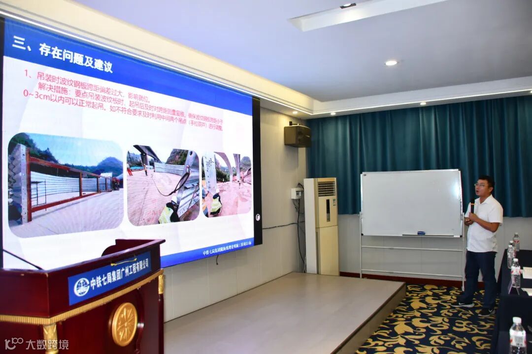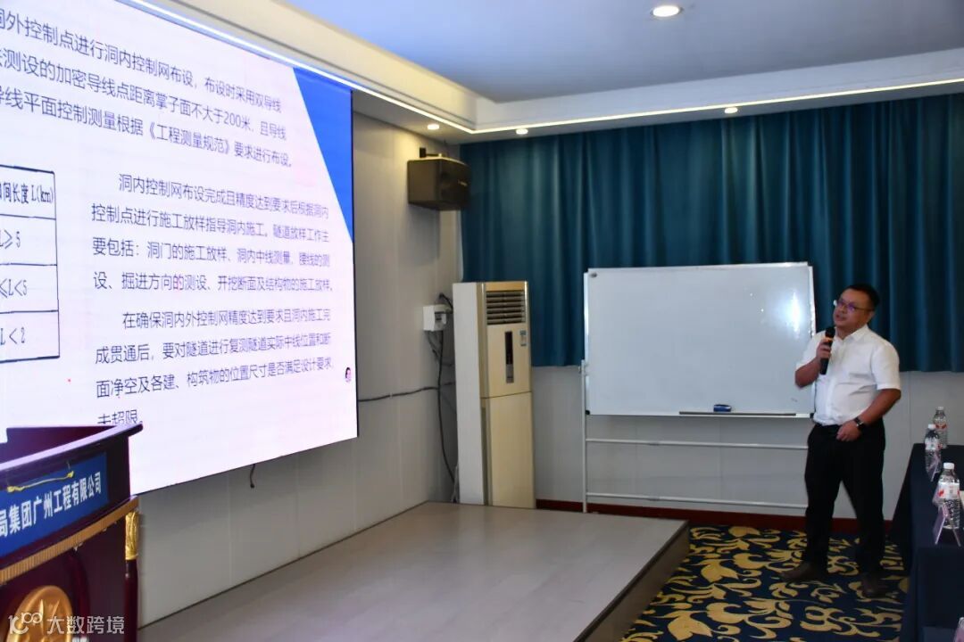 在技术交流座谈会上,来自郑州大学、湘潭大学、五新智能科技等科研院所的专家围绕行业前沿技术作专题分享,内容涵盖不同风化程度花岗岩混合料绿色填筑关键技术、基础设施绿色建造与智能运维技术、隧道成套智能工装设备、智能悬臂造桥机研发与应用等,充分展现了“产学研用”深度融合的创新成果。随后,陇海线增设明洞工程、惠州金山湖、高州迎宾大道、开放大道等八个在建项目分别就上跨既有铁路起重吊装作业、钢箱坦拱桥施工关键技术、液氧爆破技术等关键技术管理经验进行了交流分享。集团公司总工程师殷爱国应邀出席会议并讲话,对广州公司在技术管理方面取得的成效给予充分肯定,并对公司下一步技术管理工作提出了宝贵建议和殷切期望。