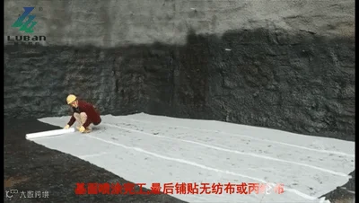 干凅后,铺贴丙纶布或无纺布