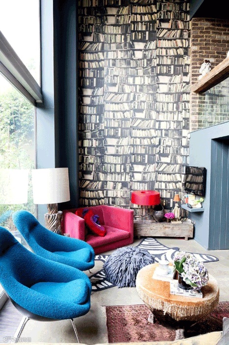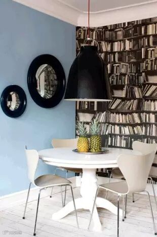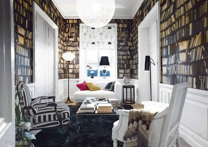 昨天我们介绍了学习空间,今天来看看和它相关的主题,在家读书。喜欢看书的人真的是愿意把家里的大部分空间都用来藏书。所以设计师专门为那些喜欢书的家庭设计了“藏书万卷”的书壁纸。让“知识的海洋”填满整个生活空间。