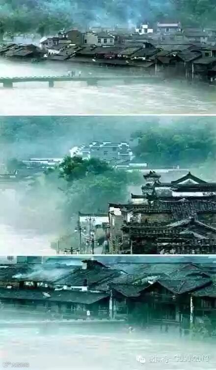 一溪流云轻梳妆。微风岸,碧如簪。黑瓦白墙,一纸红尘淡。流水迢迢自吟唱,思忆长,梦江南。