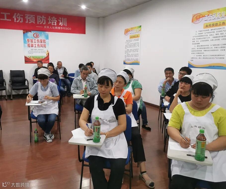 领导一行在大丰纺织执行董事兼总经理华论波、党总支书记兼工会主席甘皆凡、副总经理杨年付的陪同下,首先旁听了由北京外企人力资源服务江苏有限公司专家老师为一线40多名职工讲授的“工伤预防”培训课程。在前期评估的基础上,针对我司的具体情况和培训需求,课程选取了有代表性的“上下班交通安全”、“噪音防护”两个主题进行互动式、讨论式讲授,课件内容丰富活泼,参训职工积极回答提问、踊跃论辩发言,对于今后工伤预防意识和技能的提高很有帮助,课后大家表示要把学到的内容带到班组、带给职工,做好三级教育。在座各位领导对此次培训的形式安排、课程设计、现场效果感到满意,给予充分肯定,并希望在未来持续教育过程中加入本地案例,用实际材料举一反三、督查警醒。