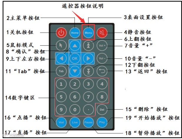 客官莫急,对于分屏节目,我们还需要设置一下分屏的模板,在播放状态下按下遥控器的“Menu”键或鼠标中键(触摸设备左上角连点8次):