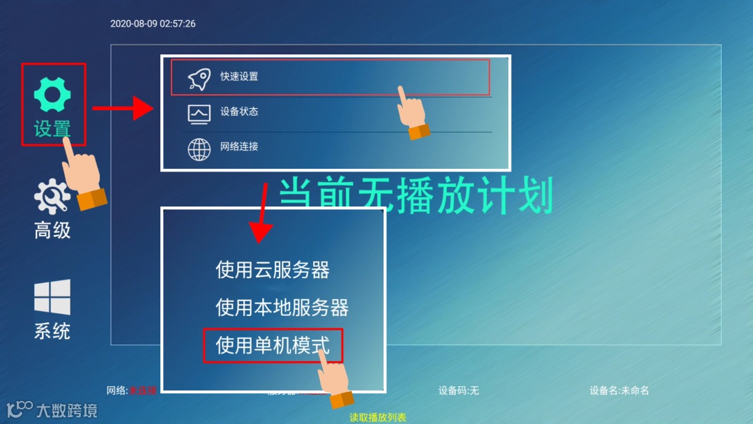 欢迎您使用满天星信息发布系统,除了联网发布,本系统还支持基于U盘的单机播放,在使用本系统的单机模式前,我们需要将满天星设置为单机模式,下面我们来看一下如何操作: