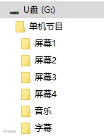 我们先来制作一个全屏播放的单机节目,只需往U盘“单机节目”里的“屏幕1”文件夹中复制要播放的素材即可: