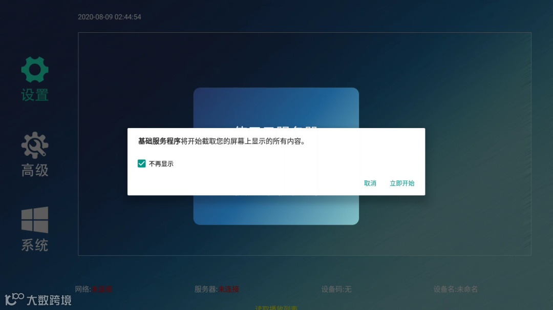 您获取到的设备若未进行过初次启动设置,当您开机后可能处于的是安卓主界面(若看到的是下文图中界面,则代表满天星已经启动,可直接查看查看下方了解如何配置单机模式),这种情况下您应在使用遥控器或触摸启动这一APP: