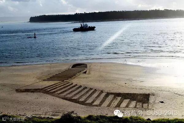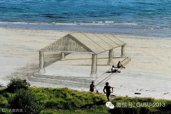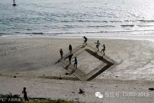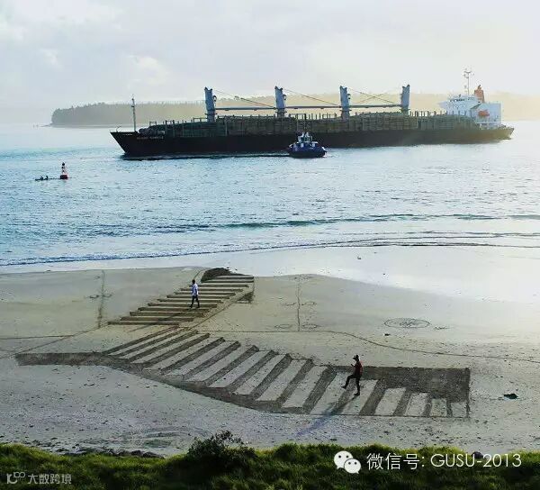 来自新西兰的Jamie Harkins是一个有才华的艺术家和音乐家,他创作了这个海滩光学幻觉和三维图像艺术,这个2D图案产生了3D的效果。