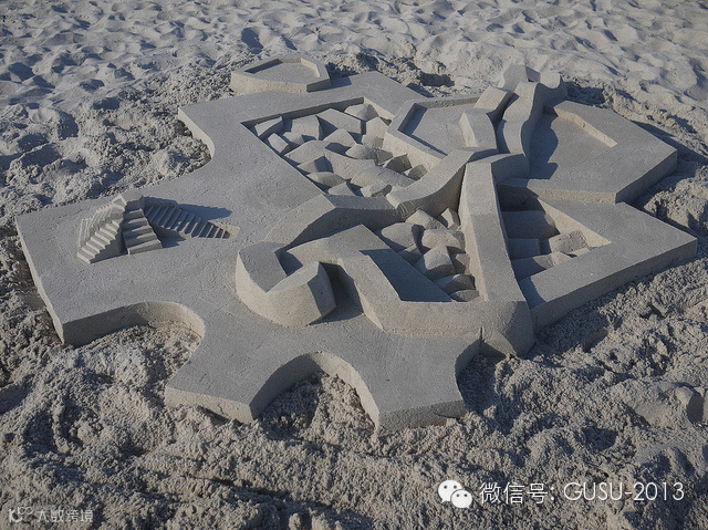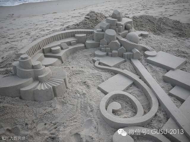 他的作品形式多样,有雕琢完美的立方体组合,还有曲线完美的道路,这些都使他的作品看起来更像是用石材雕刻的雕塑,而不是海雕。