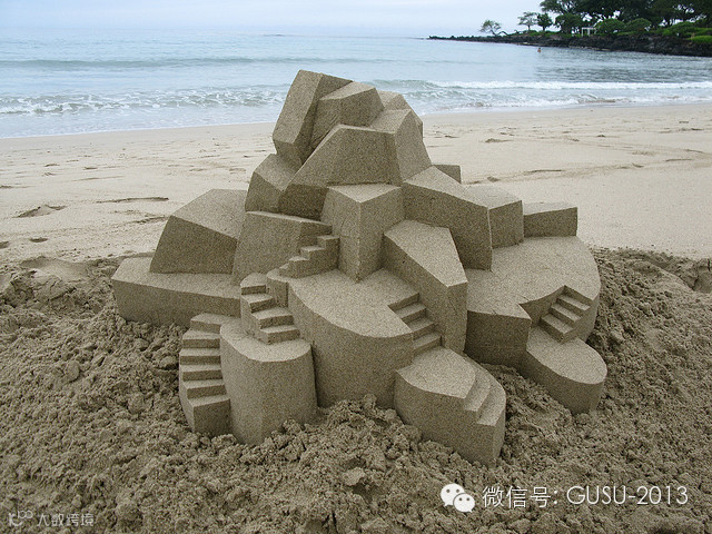 纽约艺术家Calvin Seibert创作了很多海滩作品。这组图片是艺术家今年旅行夏威夷10天中留下的作品,任然是抽象的3D立体沙包。