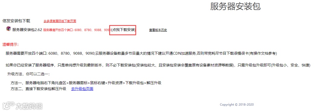 点击“点我下载文件”即可开始下载,服务端安装程序大约680Mb左右。