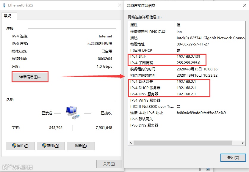 在弹出的窗口中点击“详细信息”查看当前IP地址,并记录下来: