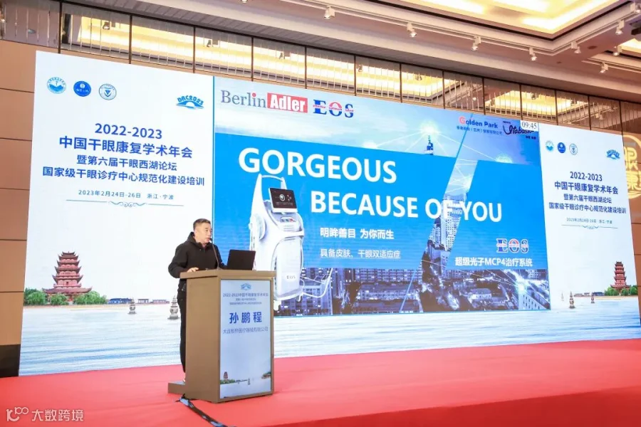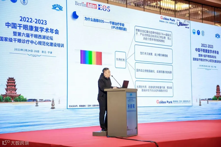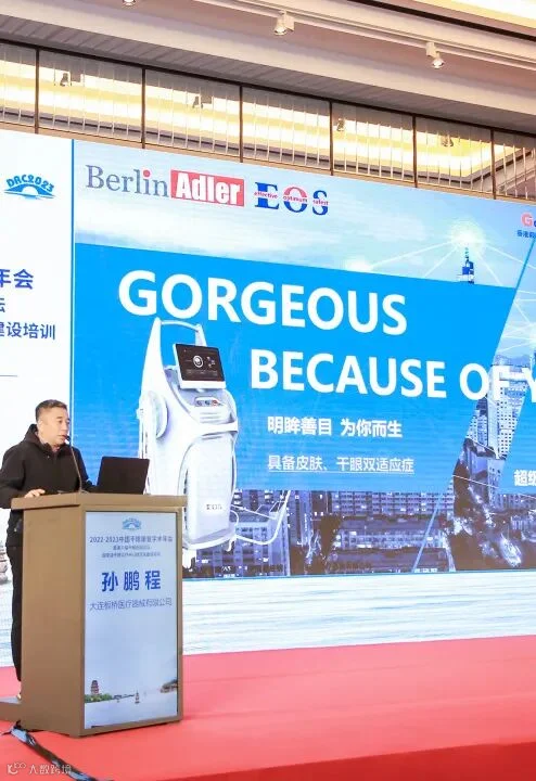 本次会议的“干眼诊疗产品企业展示PK秀”环节,Berlin Adler渠道经理孙鹏程为参加本次会议的观众们带来了精彩的EOS超级光子MCP4治疗系统的介绍,以及关于技术的分享与交流。