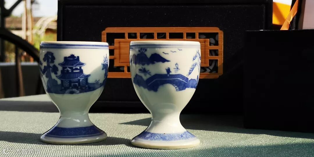成就了一个“瓷中瑰宝”的青花梧桐山水酒杯。