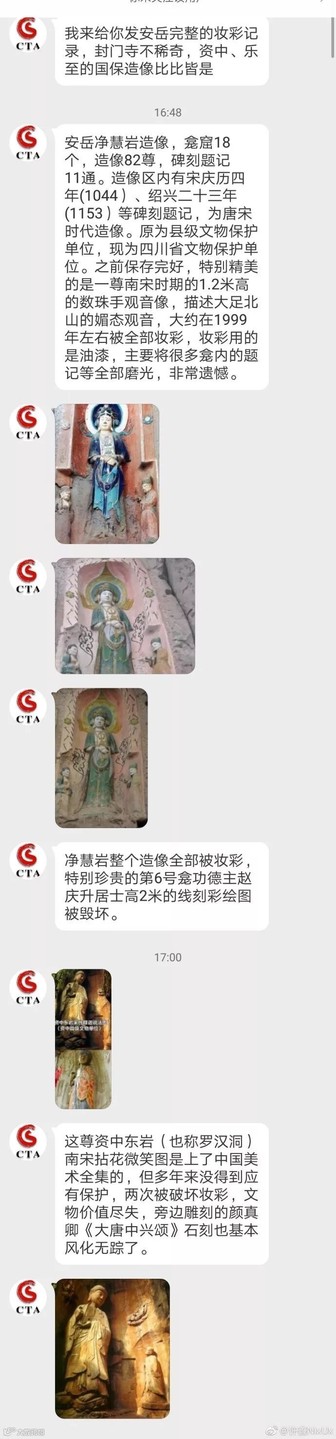 近日,敦煌研究院榆林窟讲解员@许鑫NixUx 微博发布了一篇文章,讲述了四川安岳地区古代佛像的保护现状非常堪忧。安岳地区的石窟佛造像大多建于唐宋两朝,现在却被当地文物部门“修旧如新”,变成了动画片里的卡通人物形象,修复所用的颜色之艳俗,令人唏嘘。网友都感叹:真怀疑是请的做红白喜事的扎纸工匠来做的修复!