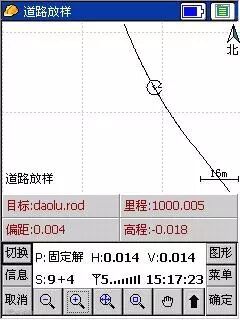 线路放样实际上是点放样的线路表现形式既在点放样时以设计的线路图为底图,实时的显示当前点在线路上的映射点(当前点距线路上距离最近的点)的里程和前进方向的左或右偏距。