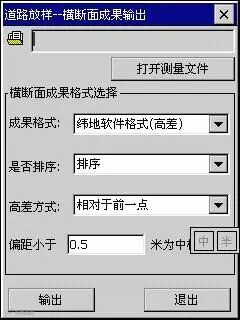 注意:线路横断面放样的断面输出,需要在此处横断面放样的界面下采集的文件才能进行相关的转换,并且一般情况下都是需要采集中桩坐标的,否则软件无法进行相关的转换输出。