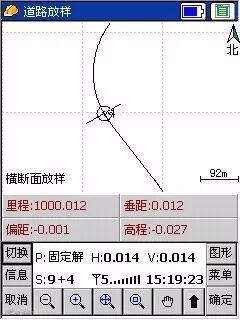 在线路放样功能界面下,我们既可以放样,同时也可以进行纵横断面的测量,横断面的测量可以在横断面放样中完成,纵断面测量只要保持在线路上测量就可以进行。