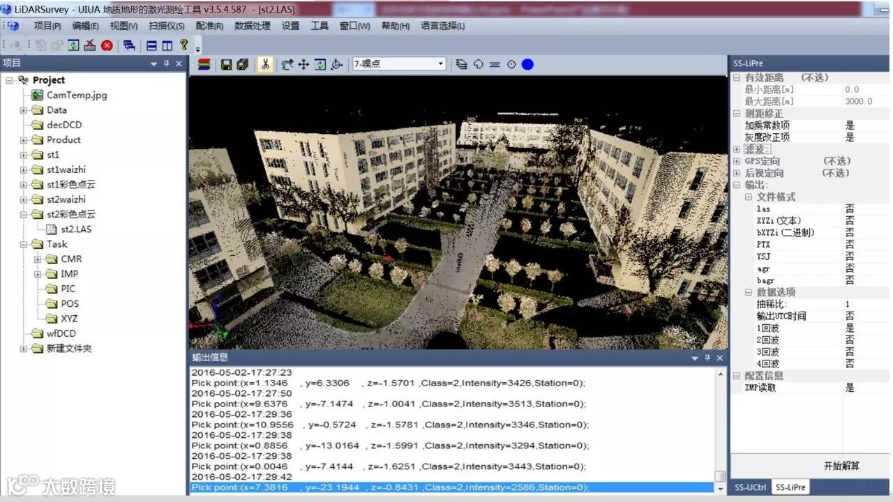 1、利用LIDAR量测地面物体的三维坐标: