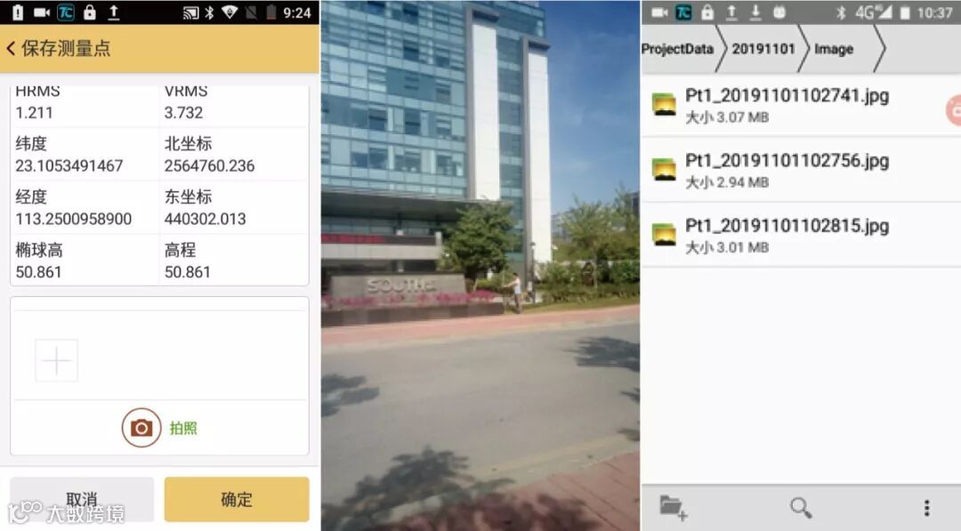 在做像控点测量时,为了便于内业准确刺点,通常需要在采集像控点后,拍摄三张照片,准确反映像控点周围的环境。