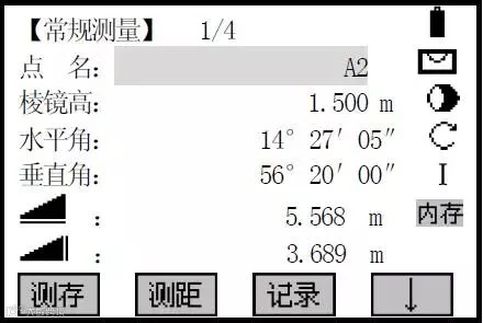 ✪⑤一旦测得测量点的有效距离,经过改正后的目标点的角度和距离就立刻显示在屏幕上。
