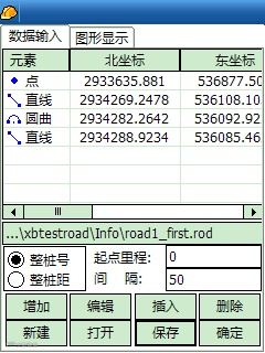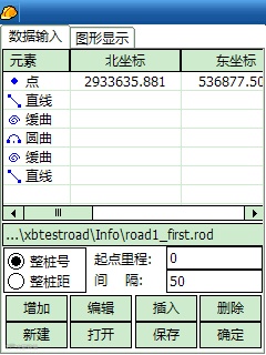 根据前面所述的元素法输入规则,开始按直曲表中的数据增加元素;元素共四种:点、直线、圆曲、缓曲。