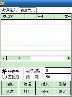 如上图所示,每个交点需要输入的参数数据有:交点名、北坐标、东坐标、第一缓曲长、半径、第二缓曲长。