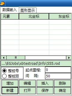 输入完成后,点“保存”按钮,保存按钮完成道路文件的保存并计算出逐桩坐标;编辑、插入、删除按钮实现修改;保存后,就可以选择图形显示查看道路线路图形了。