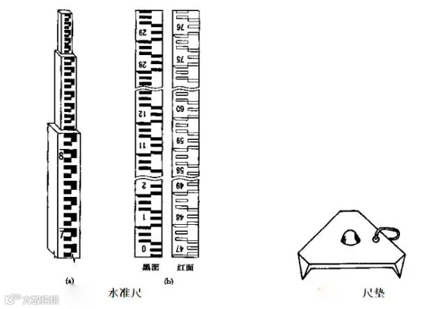 这种利用高差计算待测点高程的方法,称高差法。这种尺子称为水准尺,所用的仪器称为水准仪