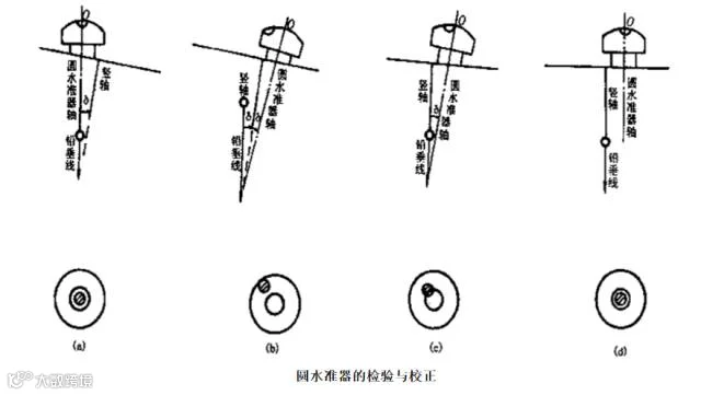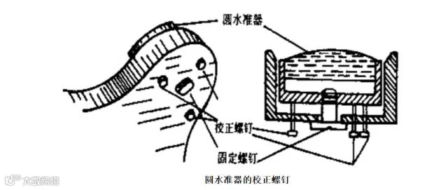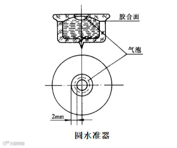 圆水准器 (circular bubble) ——精度低,用于粗略整平;水准管 (bubble tube) ——精度高,用于精平。