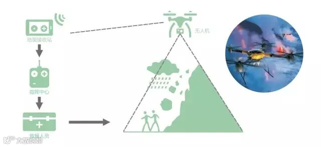 将无人机应用在森林防火工作中来,通过无人机操作可以快速定位火点、确定火情,并与互联网、卫星通信等手段相配合,实现多媒体通信保障;