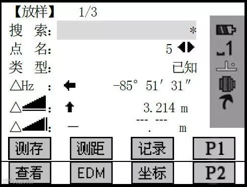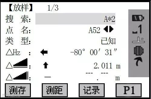 输入完毕,按[F4]保存数据,进入放样程序。开始对输入的点进行放样。
