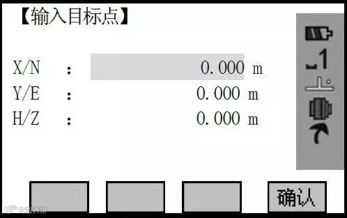 按[坐标]键,往作业中输入待放样点的坐标,保存数据后立即进入对该输入点的放样程序。