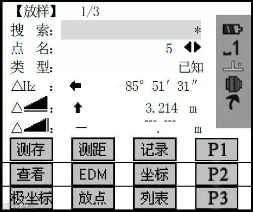 在搜索项输入待放样的点名,并按ENT键启动点搜索功能。