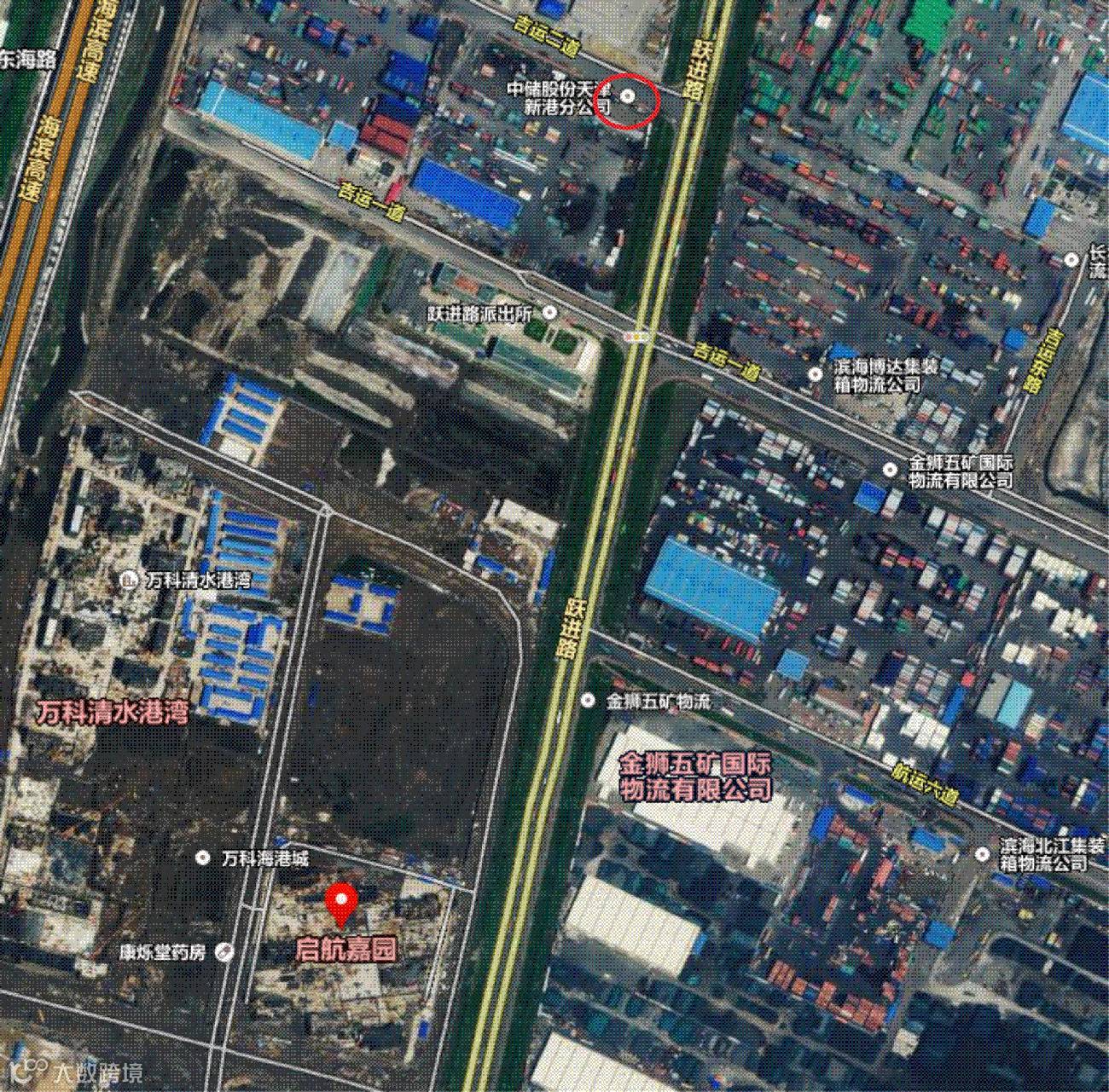 打开地图,我们聚焦滨海新区,启航嘉园小区沿着跃进路北上大概1000米的吉运二道和吉运一道中间就是本次事故主角瑞海物流公司所在地,跃进路的右边是各种物流仓库和集装箱集中地。万科一负责人告诉京华时报记者,海港城项目所在区域为天津港国际物流生活服务区,属于住宅用地。2010年初获取土地,2010年10月开始销售,“当时周边为普通物流仓库,之后我们并未获悉它改造为危险品仓库的情况”。这段文字的关键字为普通物流仓库。但问题是这个普通物流仓库里装的是什么货物?有谁知道将来有一天这些仓库里会囤积着什么危险品?