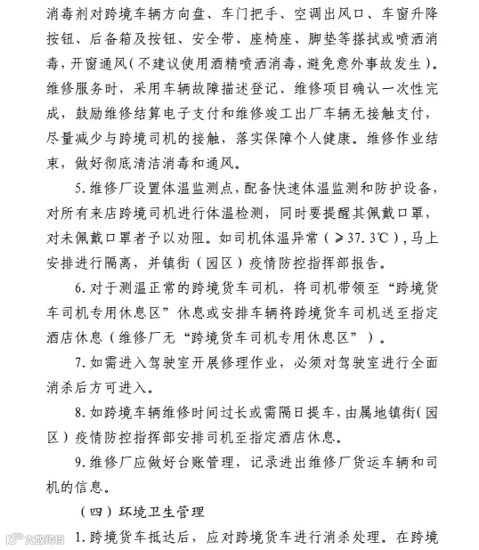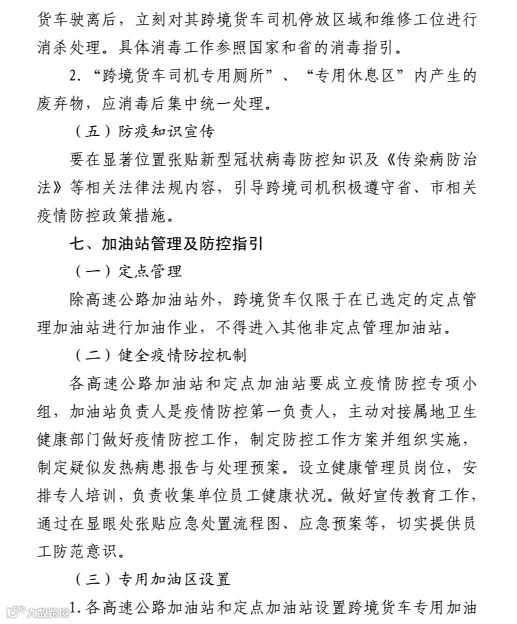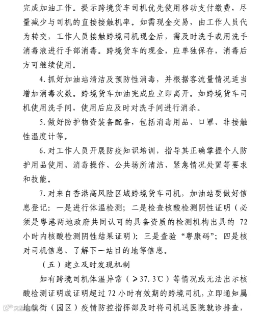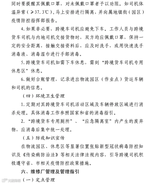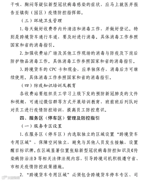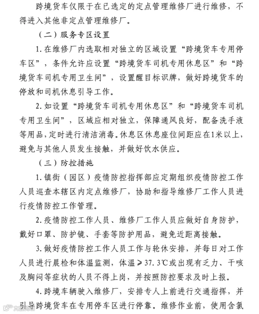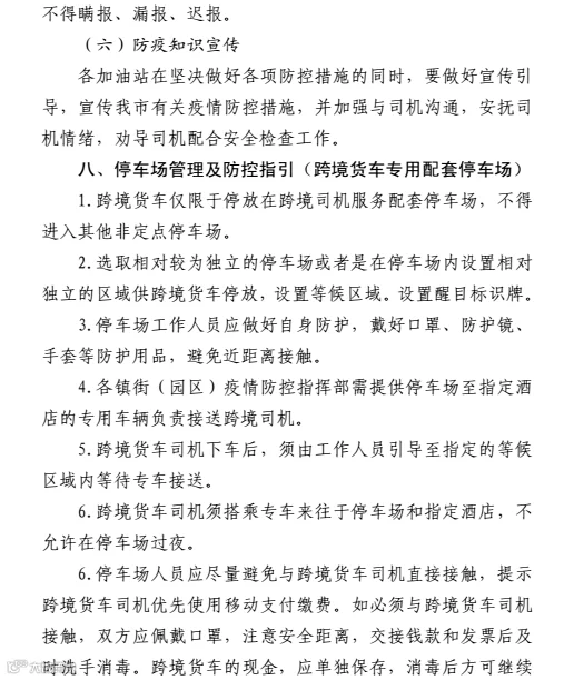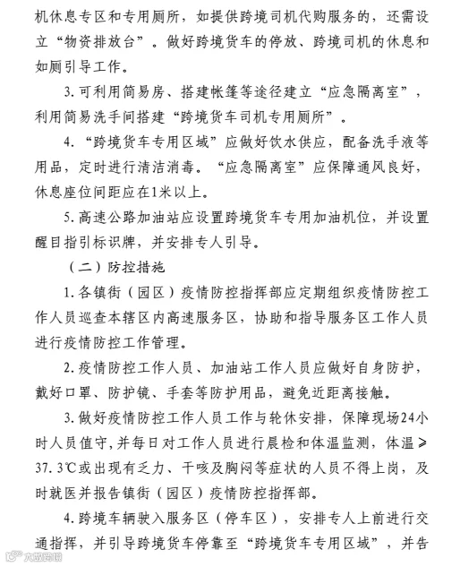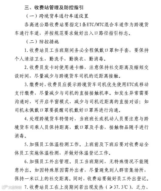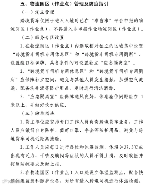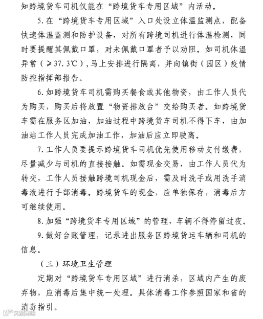 《通知》强调了,跨境货车司机的管理指引及紧密的防控措施,规范专用车道、设置服务专区、加强管理申报工作、定点管理等。