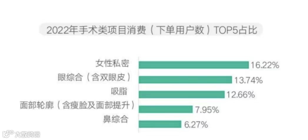 数据揭示,在2022年手术类项目消费中,女性私密整形项目异军突起,成功超越双眼皮手术、吸脂手术、面部轮廓手术以及鼻综合整形等传统热门项目,一跃成为整形手术中占比最高的类别。