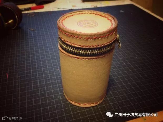 拉链完成弯曲后的皮革,并加入边。棒球十字绣十分装饰针迹加入边缘。我担保缝制了两个结