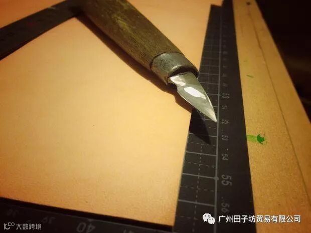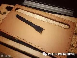 准备皮革缝制: 对孔标志指引。我用尺子和针皮画轻微的标志。冲孔